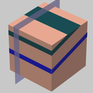 Imagine cutting each block along the cutting planes (the gray squares that intersect each block) and removing the part of the block in front of the plane. For each block, predict what the exposed face along the cutting plane would look like. On the worksheet (L-2), sketch the right block as it would look if the part of the block in front of the cutting plane was removed. |