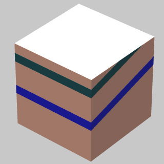 These layers are gently dipping. Look at the front and right sides of the block to determine how the layers intersect the top face. On your worksheet (L-1), sketch the layers on the top face as well. |