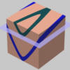 Cut into the left block, from top to bottom, so that it matches the cutting plane shown in the image above the block. Think about the orientation of the layers as you cut. The right block will only change in transparency - it won't rotate or cut. |