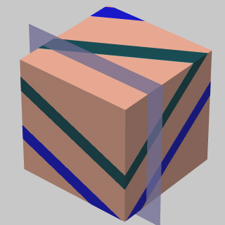 Imagine cutting each block along the gray cutting planes and removing the part of the block in front of the plane. For the right block, predict what the exposed face along the cutting plane would look like. In your worksheet (L-4), sketch the front face of the left block after it is cut. |